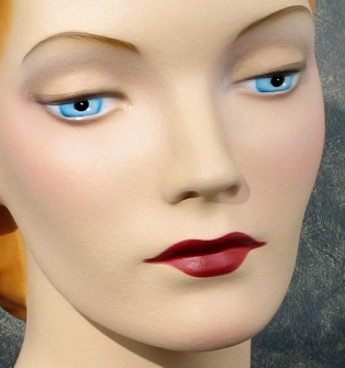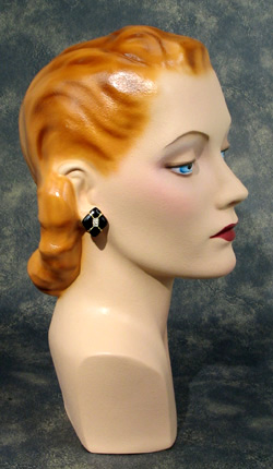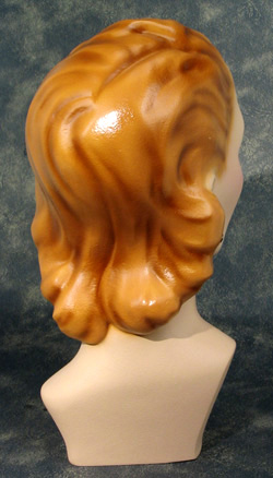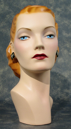 This is a precise REPLICA of a 1940's department store display bust that was molded directly from a vintage model. This model has a strong 40's period look that is both arrogant and mystical......what a beauty and has that Greta Garbo appearance! This lady is 15" in height and has a forehead circumference of approximately 21 1/2". Apparel shown is for display only and is not included. "There is hardly anything in the world that some man cannot make a little worse and sell a little cheaper, and the people who consider price only are this man's lawful prey!" John Ruskin (1819-1900). Our models are hand-made, from start to finish, one at a time in our shop by myself and my wife. |