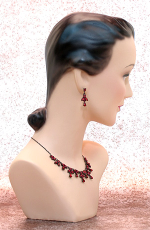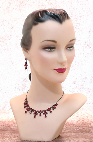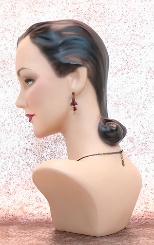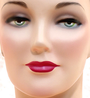 This is a precise REPLICA of a 1940's department store display bust that was molded directly from a vintage model. This is a large model and is super for jewelry as well as hats. The ears are pierced for post earrings. This lady is 16" in height and has a forehead circumference of approximately 21 1/2". Apparel shown is for display only and is not included in the sale. This model was cast in a composite resin (our own blend of urethane resin + powdered porcelain + silica) that is nontoxic and very durable. Painted with original techniques, tools and style, it has the appearance and feel of the vintage mannequins without the inherent problems of the original material. There is a 1 1/4" hole in the bottom that safely permits display on a stand if you so desire. Our international friends are welcome to purchase and we will ship anywhere in the world but must add the actual shipping charge to the selling price. S/H/I on this model is $14.00 with insured UPS in the contiguous 48 states. Payment may be made by credit card with PayPal (our favorite), postal or bank money order, or personal check (and with good eBay feedback will not delay shipping). We will answer all email messages ASAP and invite inquiries BEFORE purchase. Your interest is sincerely appreciated and happy shopping. |